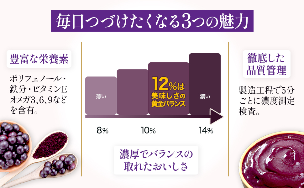 アントシアニンをはじめとする抗酸化物質を豊富に含み、オメガ3,6,9脂肪酸もバランスよく含有しています。
