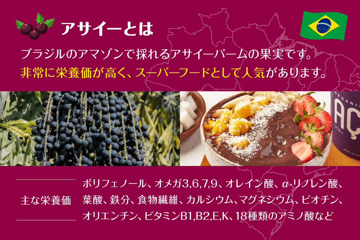 アサイーにはたくさんの栄養素が含まれています。天然のサプリメントと言われるほどで、非常に高い栄養価があります。